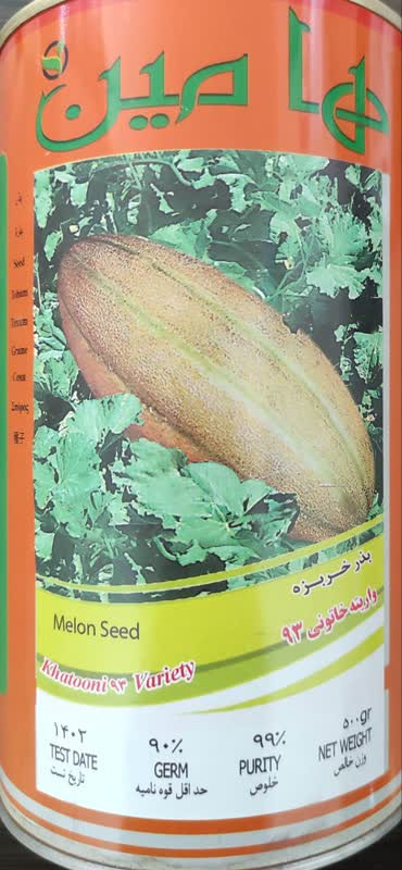 بذر خربزه هامین بهترین رقم خربزه مشهدی در ایران قابل رقابت باتمام برنده های وارداتی ارگون و رزن سید. باقیمت مناسب.تعداد 3 عدد میوه در ابتدای بوته با رنگ زرد و زره دار و بازار پسند.
